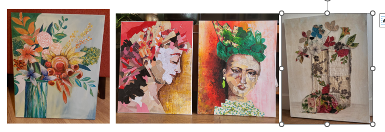 At this stage in my art journey, I was running a paper crafting art class for vulnerable adults at Cornerstone community centre in Salford, so I had lots of ideas and materials to practice with. Jennifer Chamberlin offers lots of easy lessons on scrappy pictures with fabulous results.